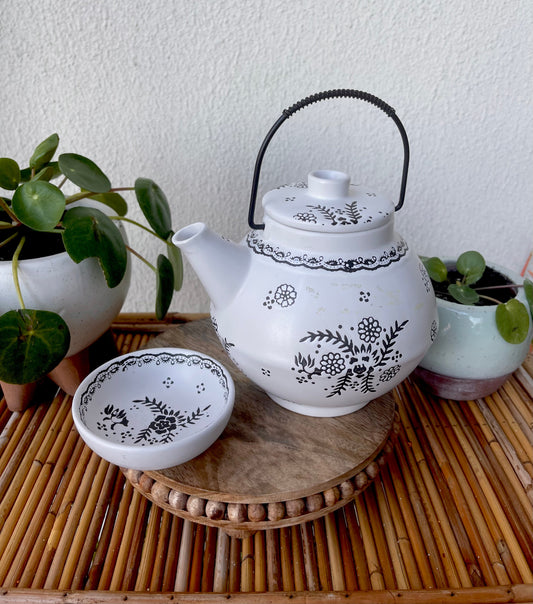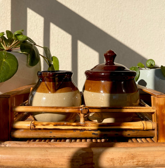 Vintage Creamer & Sugar Bamboo Caddy Set