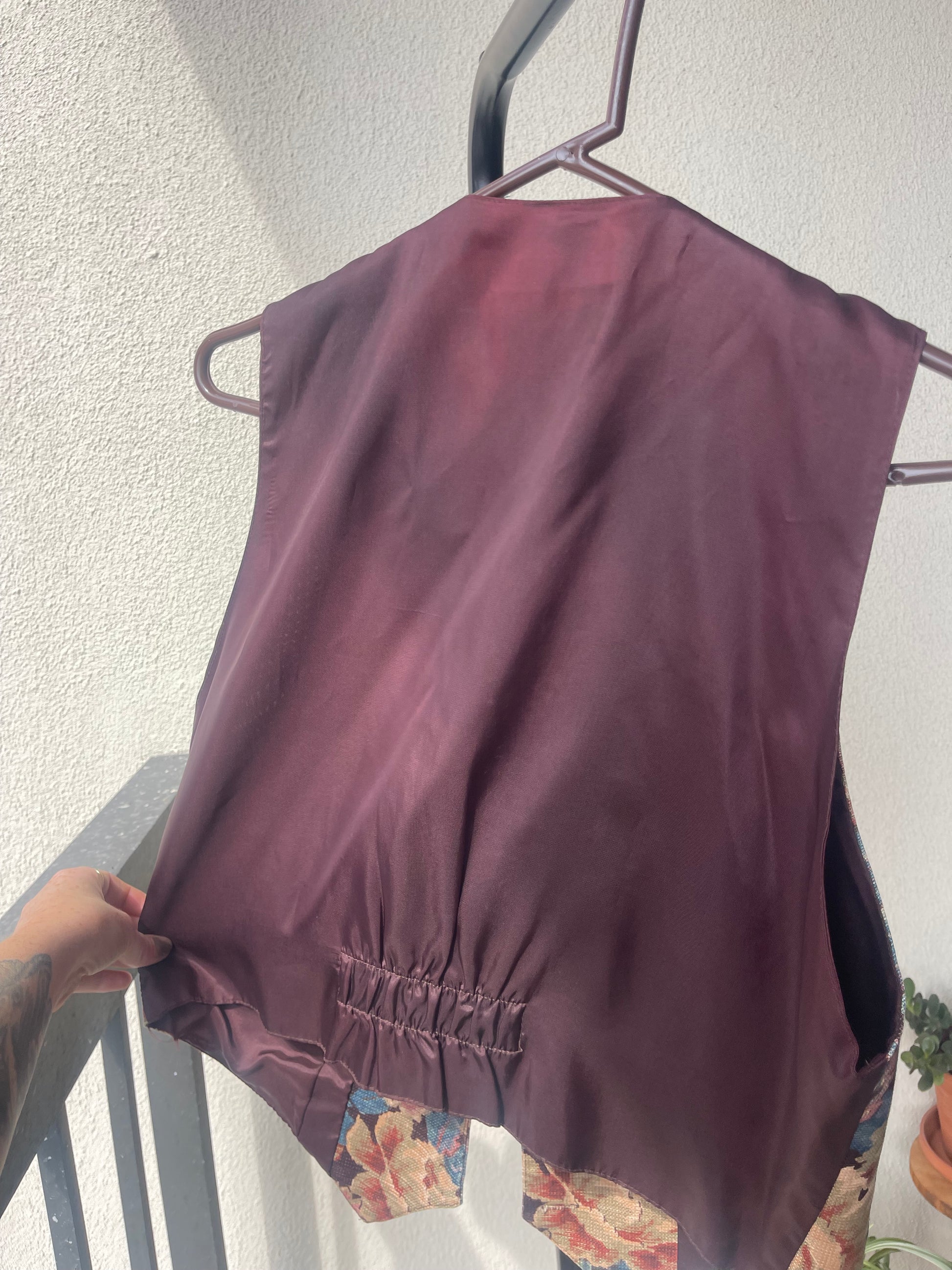 Spice up any outfit with this stunning vintage tapestry vest. Good condition, minor discoloration on the back fabric by the neck. No rips or tears.