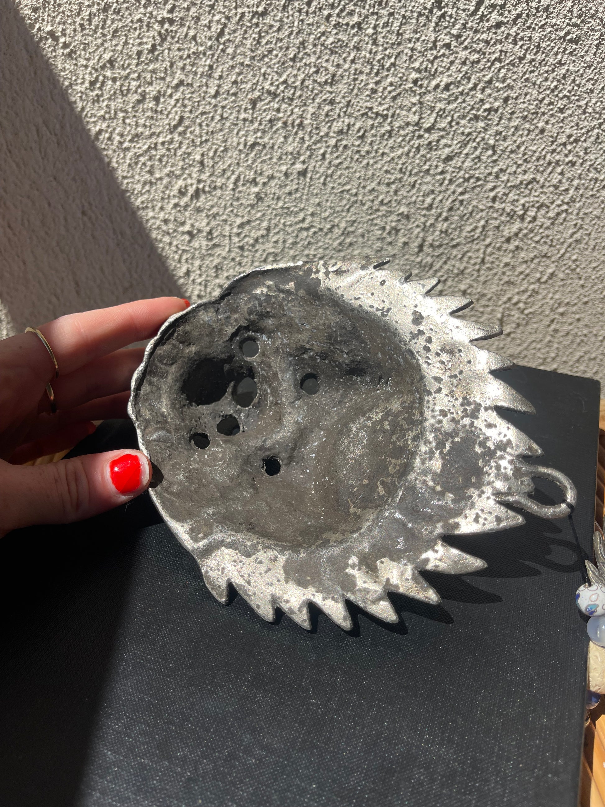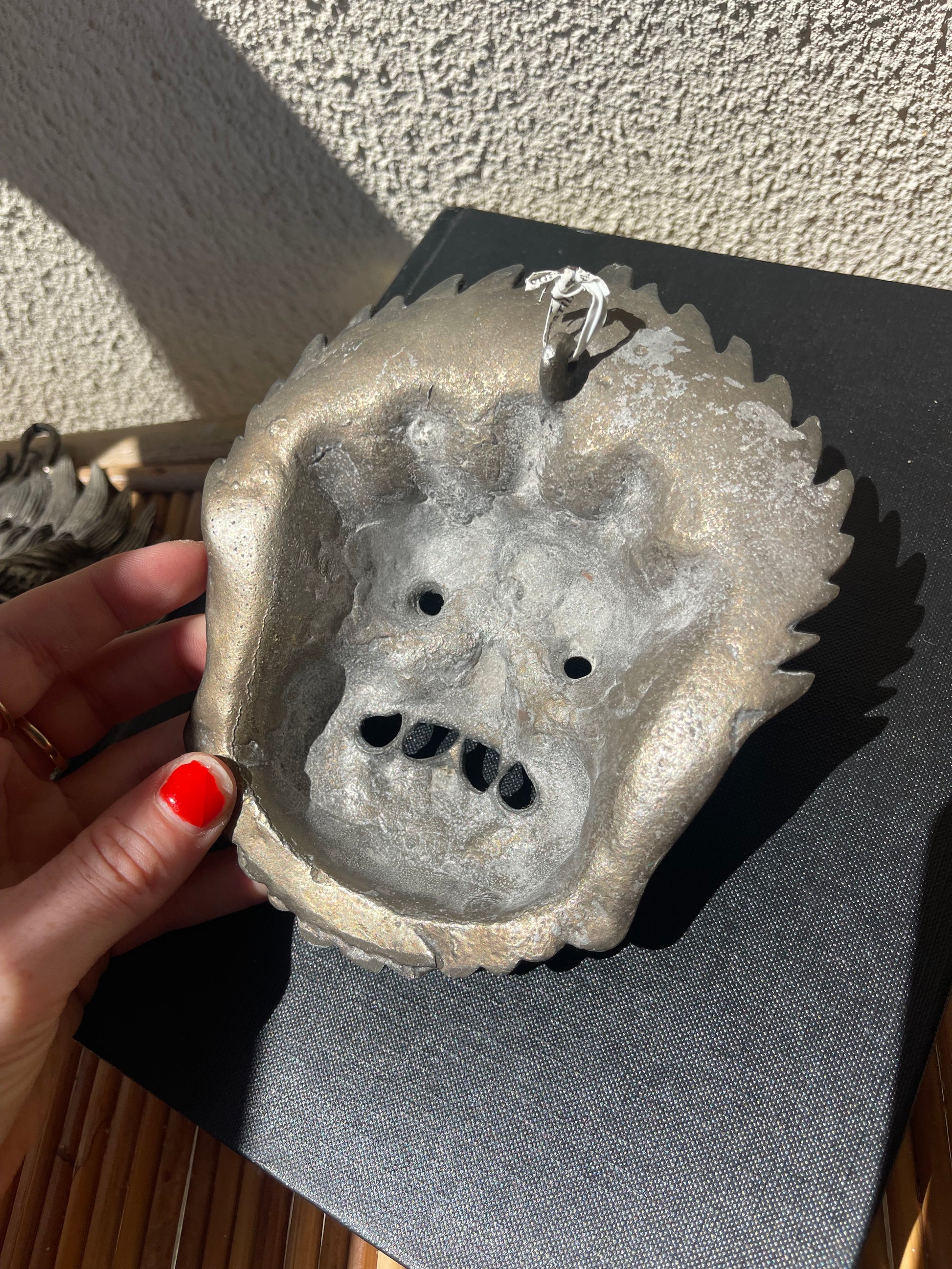 Possibly brass (not magnetic) but silver toned set of two sacred guardian masks. Perfect for any gallery wall or adding character to a space.